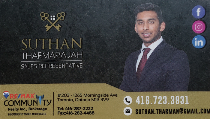 Suthan Tharmarajah - Real Estate Agent1265 Morningside Avenue Toronto Ontario M1B 3V9 Canada 416 287 2222416 282 4488testsuthan.tharman@gmail.com2021-05-28 22:50:07Remax Community Realty Inc.