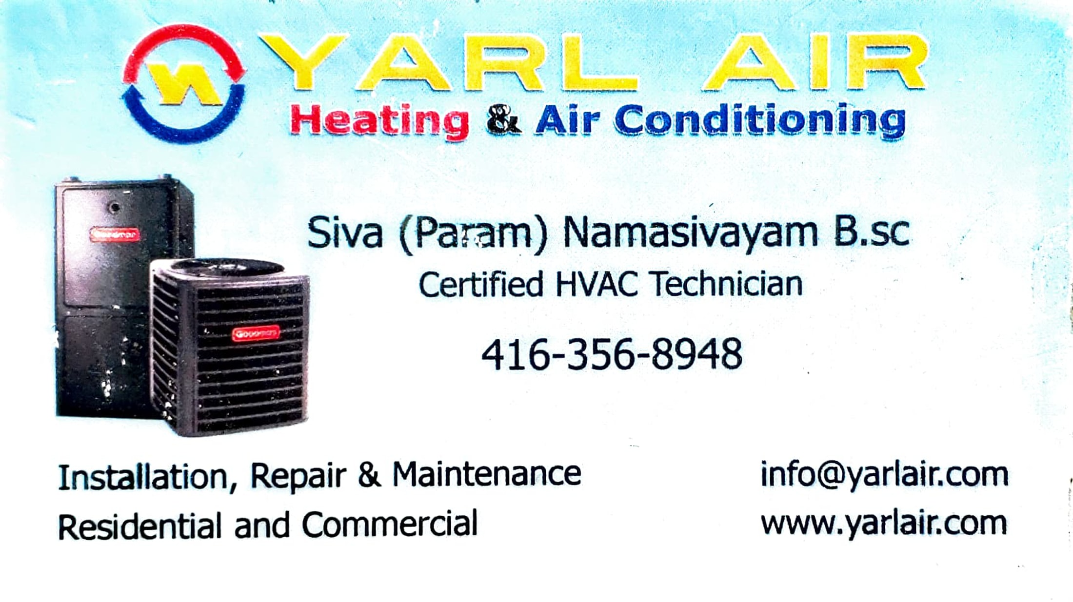 Yarl Air - Siva (Param) Namasivayam Ontario Canada 416 356 8948testinfo@yarlair.comwww.yarlair.com2021-05-21 01:11:02Heating, Air Conditioning