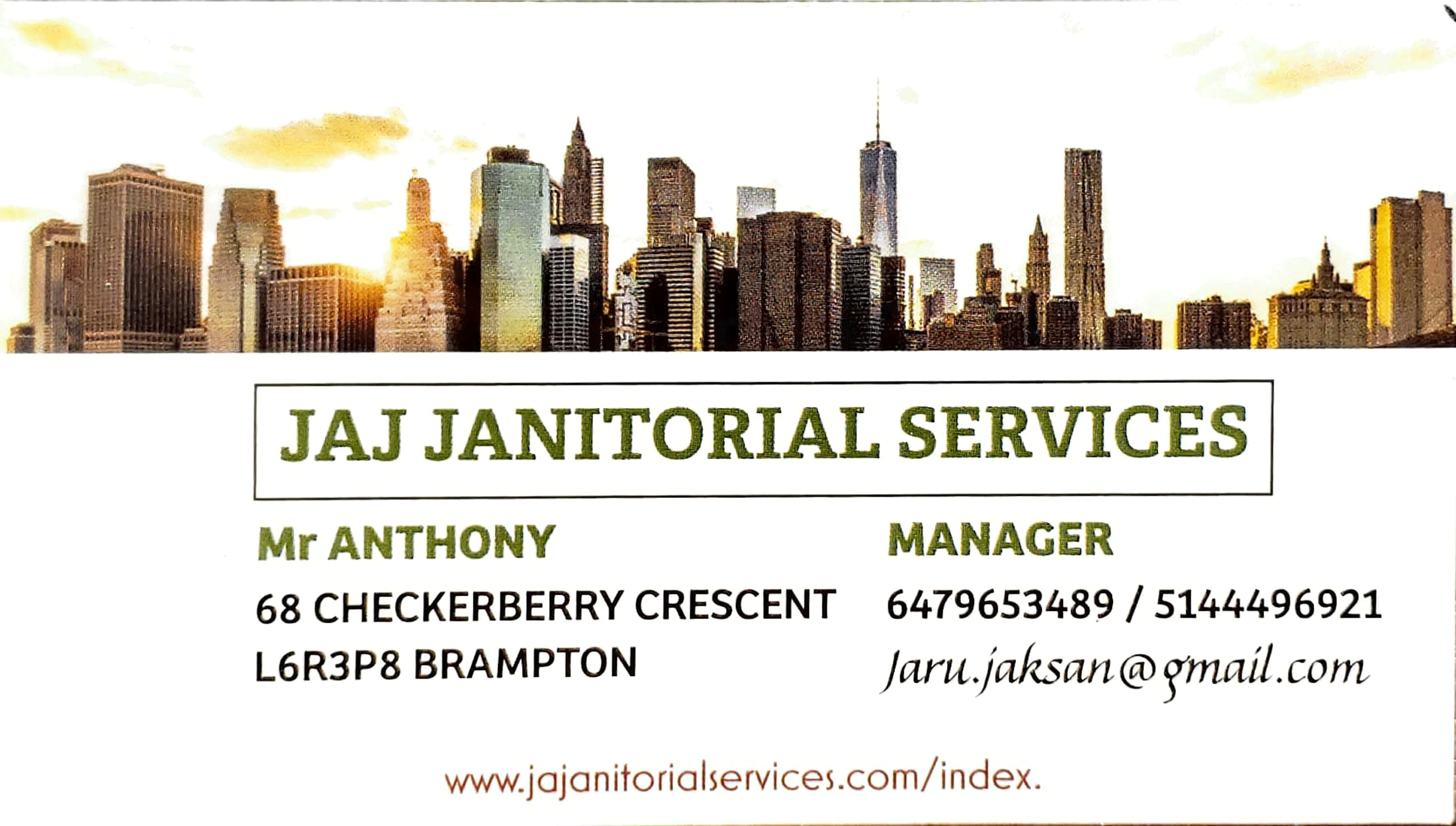 Jai Janitorial Services68 Checkerberry Crescent Brampton Ontario L6R 3P8 Canada 647 965 3489514-449-6921testjaru.jaksan@gmail.com2021-06-01 22:09:53